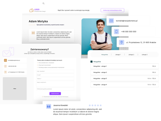 Wybierz stronę internetową dopasowaną do Ciebie i Twojej działalności. Dzięki dedykowanym modułom stworzonymi z myślą o branży, w której działasz, strona będzie prosta i funkcjonalna. Pozwól Twoim klientom dowiedzieć się więcej już przed pierwszym spotkaniem.