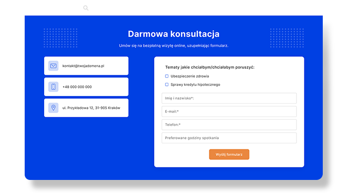 Skontaktuj się i opowiedz Nam więcej o sobie i swoich potrzebach. Uzupełnij formularz i umów się ze mną na bezpłatną konsultację.