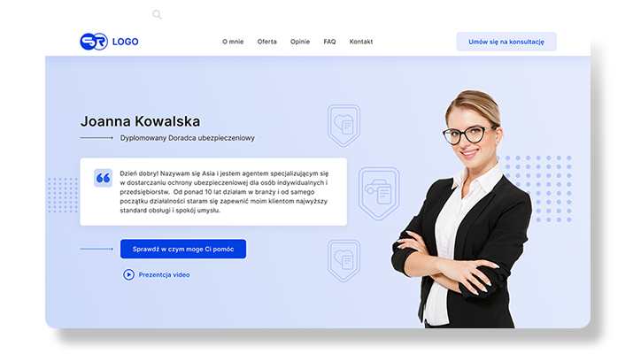 To pierwsze, co odwiedzający zobaczą na Twojej stronie. Moduł przedstawia Twoją osobę jako specjalistę w krótki, ale konkretny sposób.